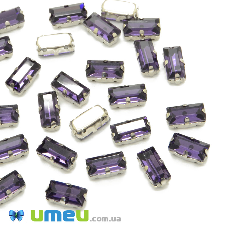 Шатон прямокутний 10х5 мм, Темне срібло, Фіолетовий (KAB-040973) /
