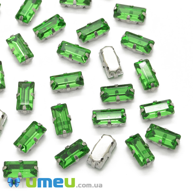 Шатон прямокутний 10х5 мм, Темне срібло, Зелений (KAB-040974) /