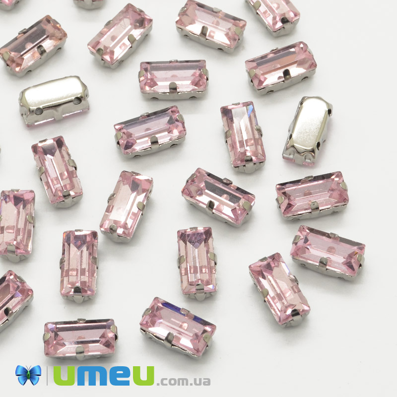Шатон прямокутний 10х5 мм, Темне срібло, Рожевий (KAB-040977) /