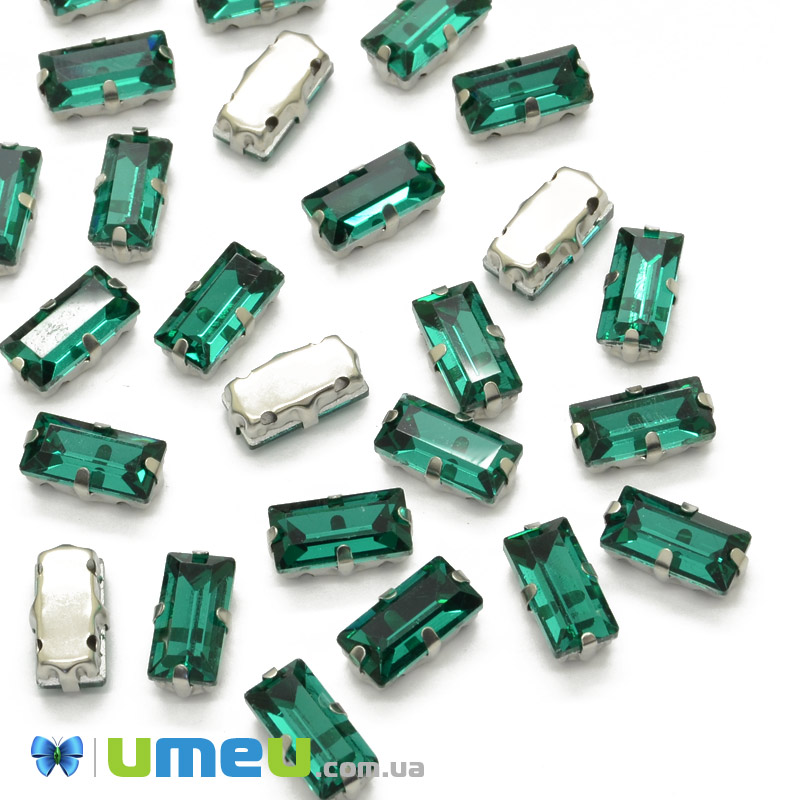 Шатон прямокутний 10х5 мм, Темне срібло, Смарагдовий (KAB-040979) /