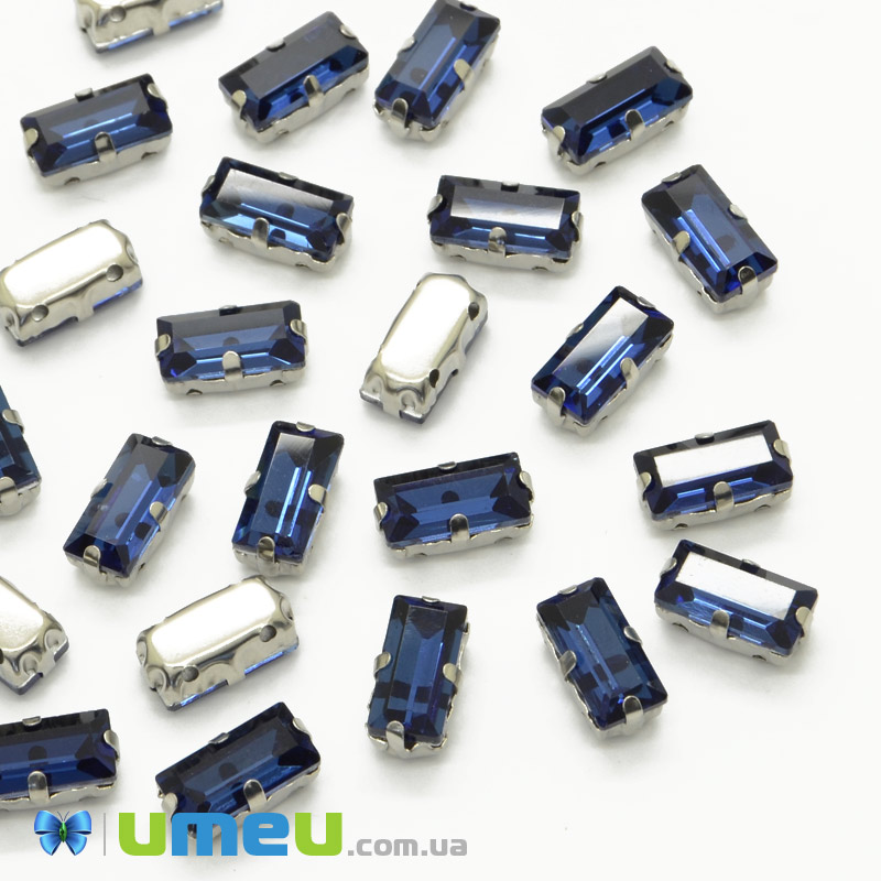 Шатон прямокутний 10х5 мм, Темне срібло, Синій темний (KAB-040982) /