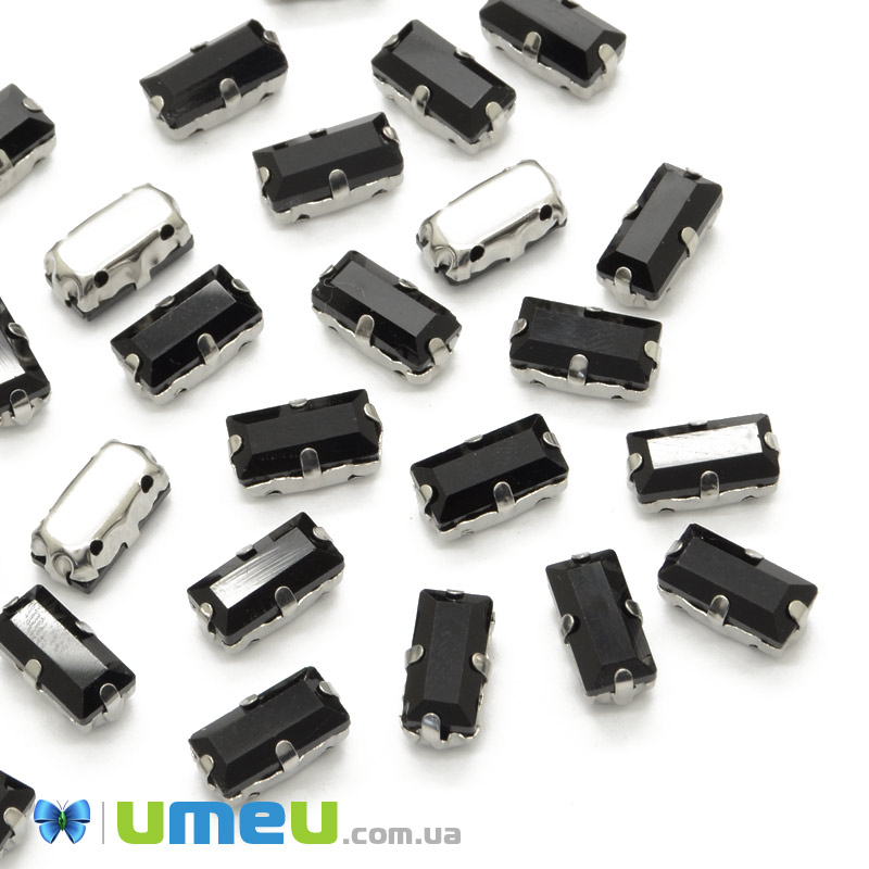 Шатон прямокутний 10х5 мм, Темне срібло, Чорний (KAB-040983) /