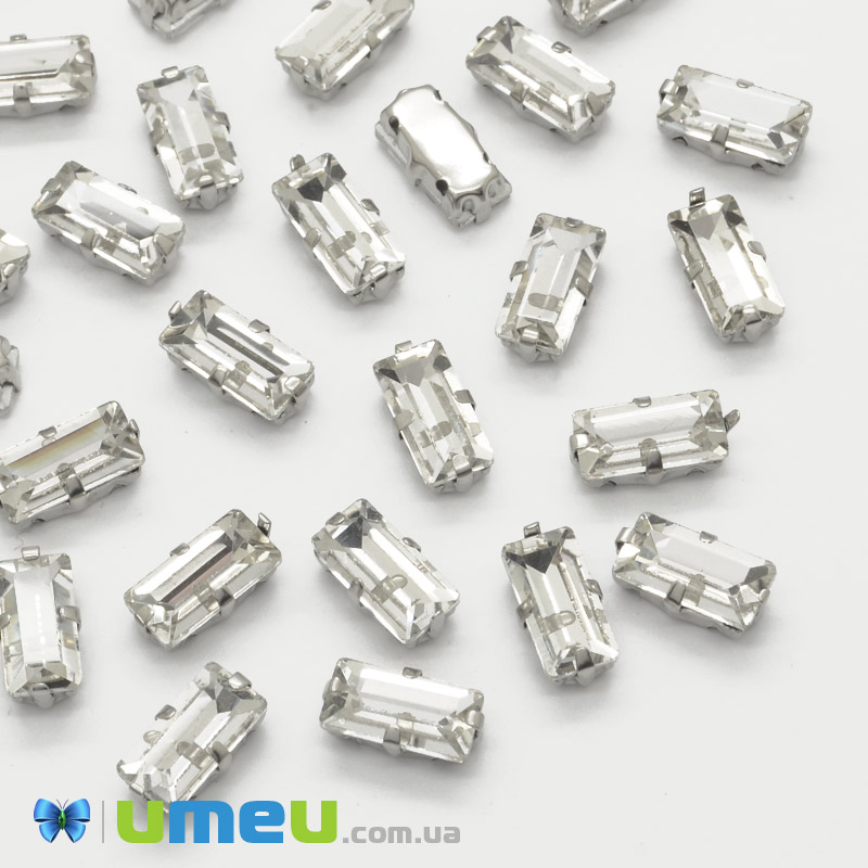 Шатон прямокутний 10х5 мм, Темне срібло, Білий (KAB-040984) /