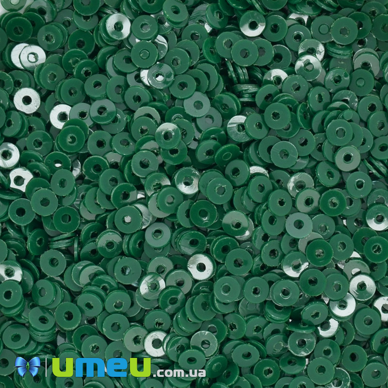 Паєтки Індія круглі плоскі, 3 мм, Зелені (PAI-041023) / 1 уп (5 г)