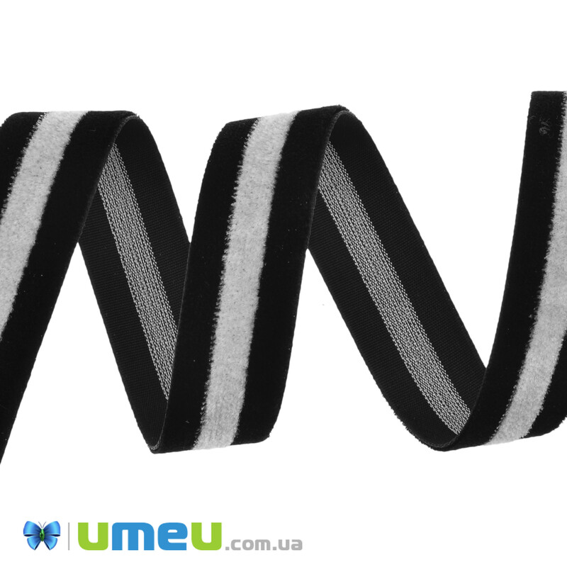 Стрічка оксамитова, 20 мм, Чорно-сіра (LEN-042192) / 1 м