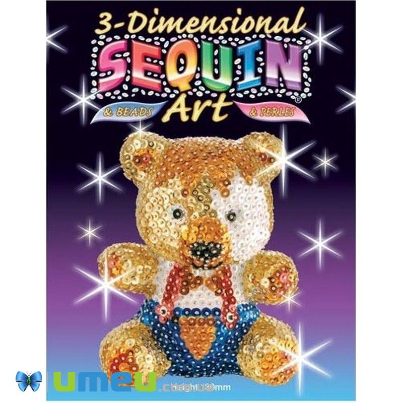 Сяючий ведмедик, покритий яскравими блискітками - саме таку фігурку можна створити з набором Sequin Art 3D Teddy. Всі необхідні матеріали та інструменти в комплекті. Процес виготовлення тривимірної фігурки ведмедика захоплюючий, а до того ж дуже корисний. Адже клопітка робота руками цілому покращує координацію рухів, моторику дитини, а цікаві матеріали і творчий процес сприяє розвитку образного мислення, когнітивних навичок. Готовий виріб буде радувати око; ведмедиком можна гратися, або ж подарувати рідним як сувенір. Розмір фігурки - 13 см. Набір призначений для дітей від 8 років.