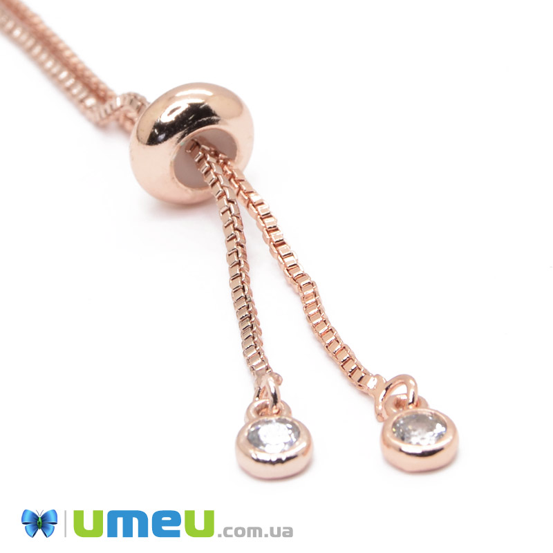 Застібка для браслета зі стопером і стразами, 12 см, Рожеве золото (STL-044257) / 1 шт