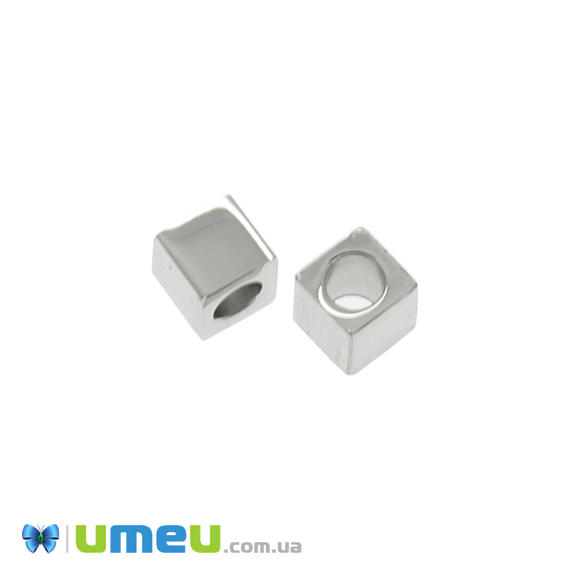 Намистина з нержавіючої сталі Куб, 4х4х3, 8 мм, Темне срібло (STL-044608) / 1 шт