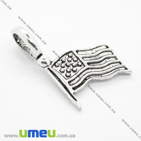Підвіска метал. Американський прапор, 22х14 мм, Античне срібло (POD-004586) / 1 шт