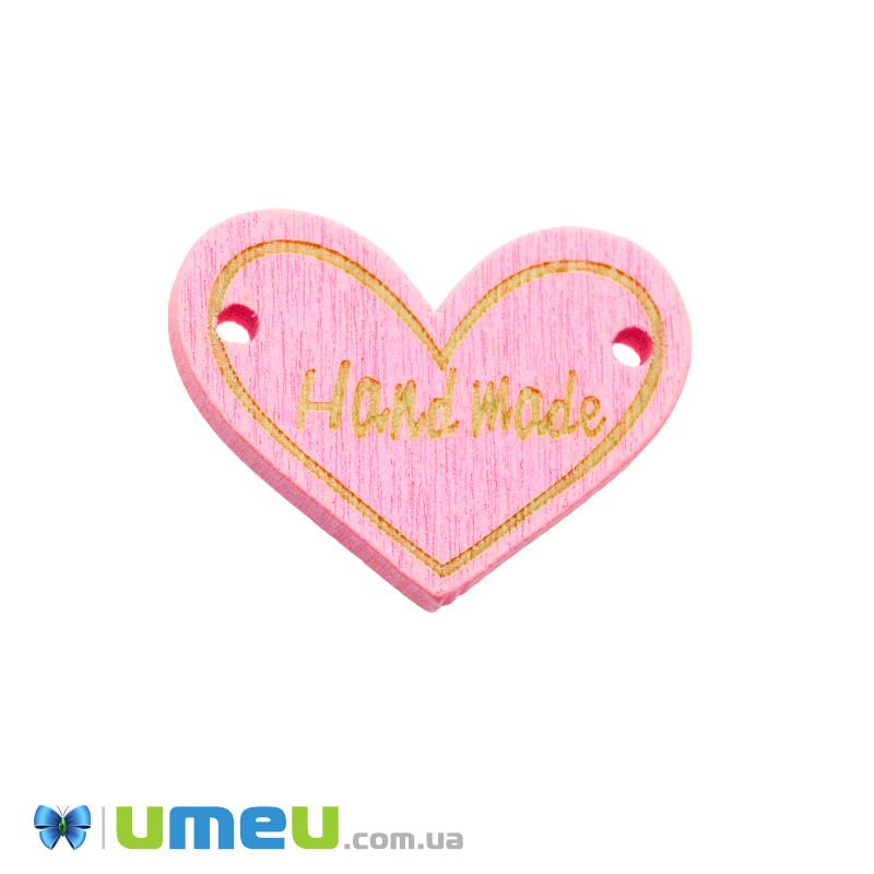 Бірка дерев'яна Серце «Hand made», 30х23 мм, Рожева (PUG-047776) /