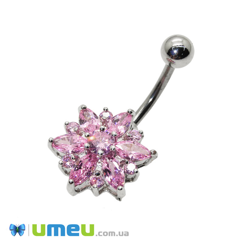 Загальні розміри сережки для пірсингу 29х15 мм. Діаметр основи із стразами 15 мм. Стрази кубічний цирконій.