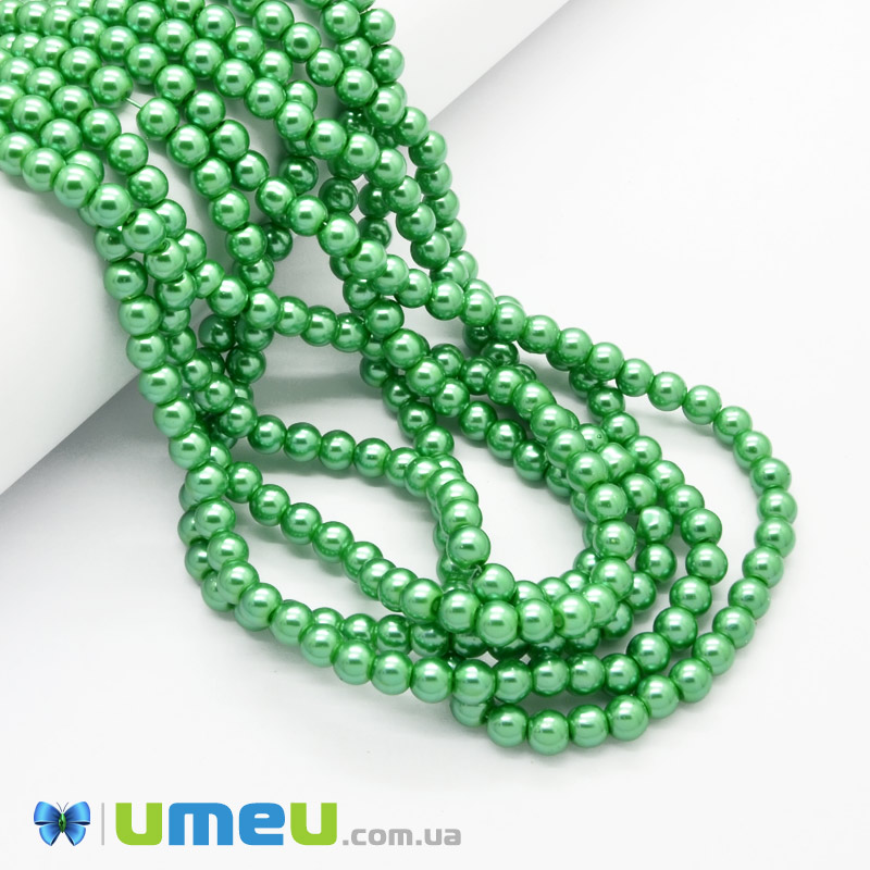 Намистини скляні Перли, 6 мм, Зелені, Круглі (BUS-048913) / 1 низка
