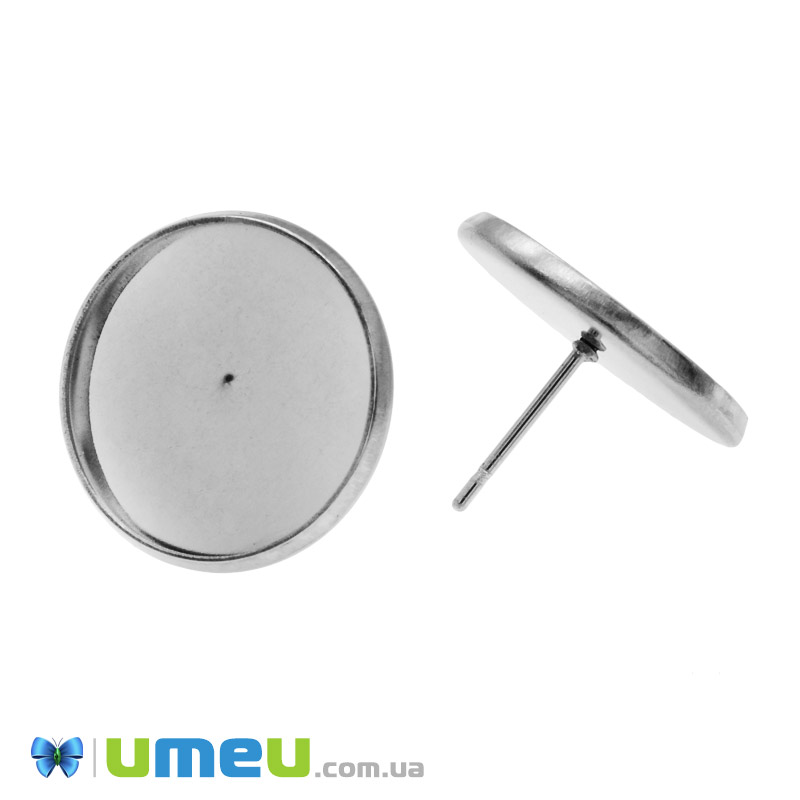 Пусети з нерж. сталі під кабошон 16 мм, 18х13 мм, Темне срібло (STL-048994) / 1 уп (2 шт)