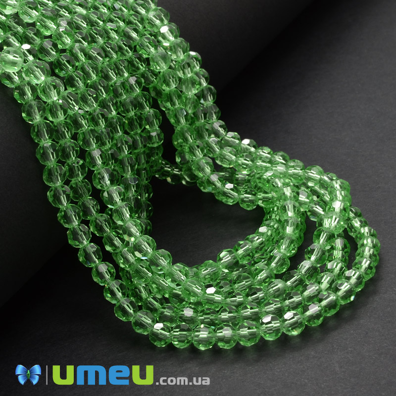 Намистини круглі грановані, 4 мм, Салатові (BUS-049308) / 1 низка