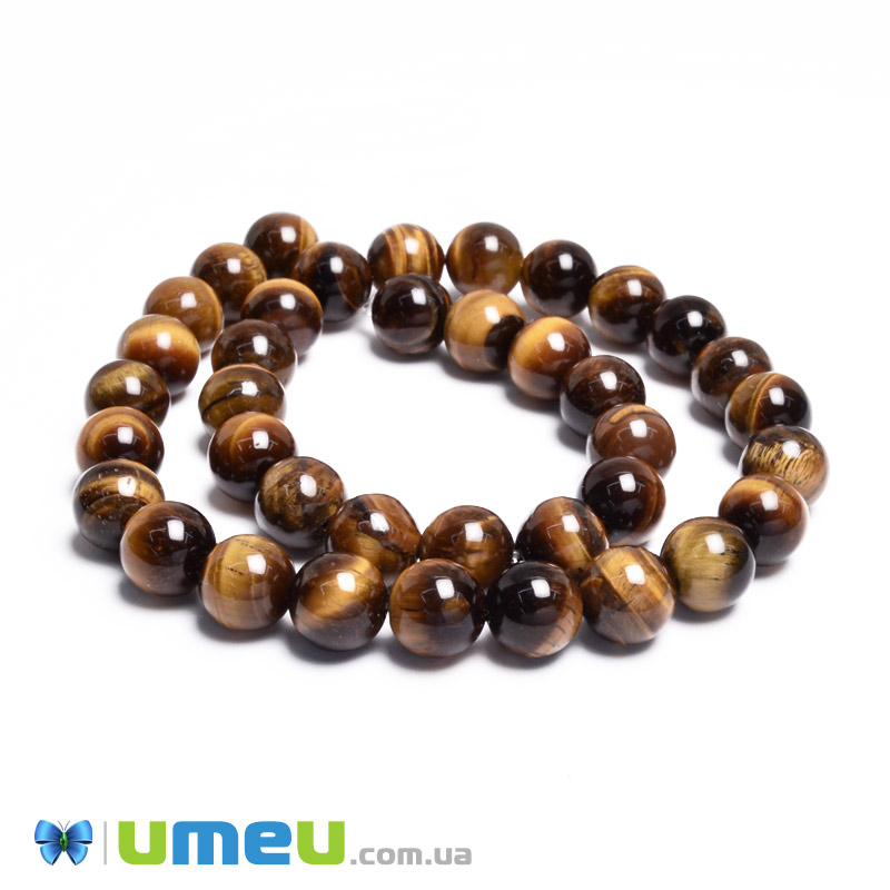 Намистини Тигрове око, Натур. камінь, 10,5 мм, Круглі, 38 см (BUS-049738) / 1 низка
