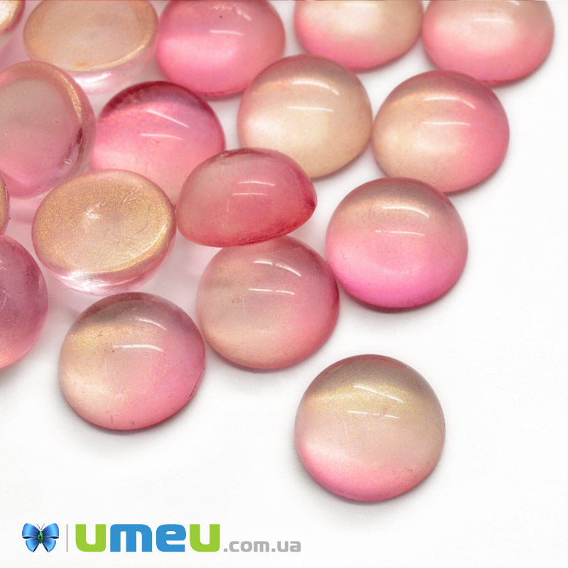 Кабошон скляний, 14 мм, Золотисто-рожевий (KAB-050681) / 1 шт
