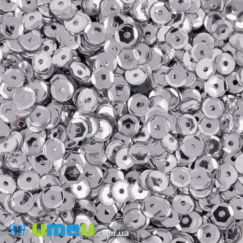 Паєтки Індія круглі грановані, 4 мм, Сріблясті (PAI-051128) / 1 уп (5 г)