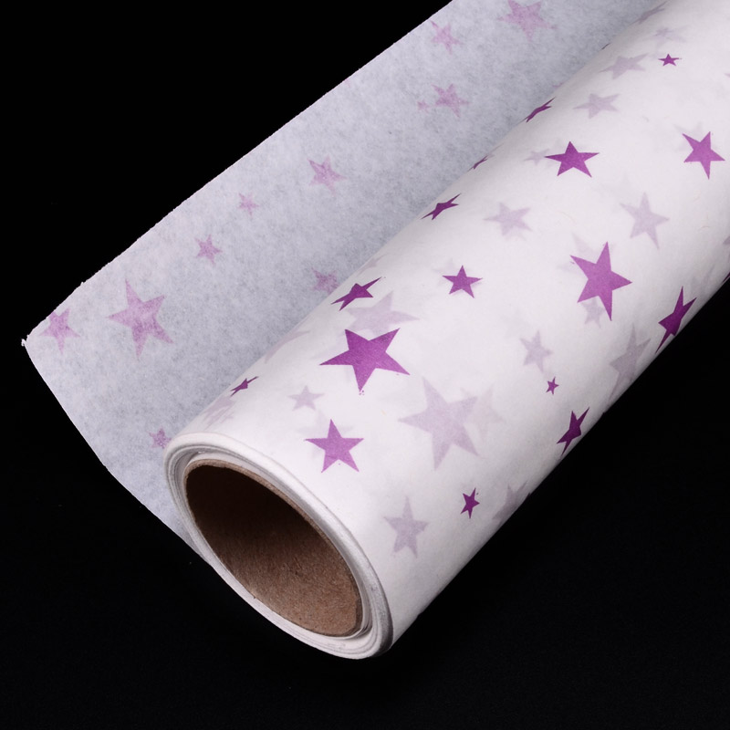 Папір тіш'ю з бузковими зірками, 50см х 14м, Білий (UPK-051331) / 1 рулон