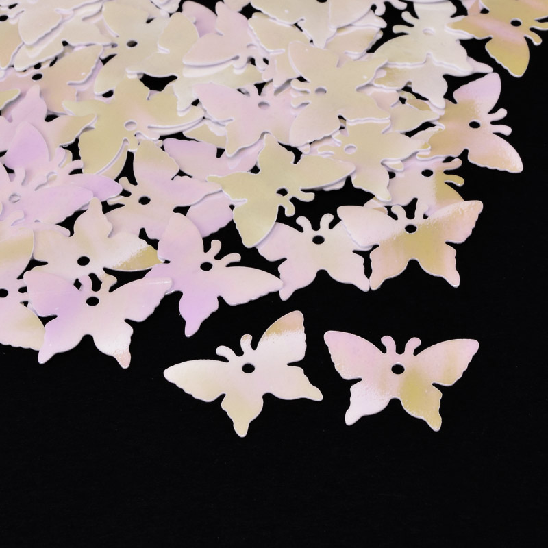 Паєтки Китай Метелики, 17х13 мм, Білі АВ (PAI-052651) / 1 уп (5 г)