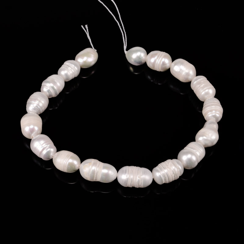 Намистини Перли річкові натуральні молочні, Рис, 7-9х10-14 мм (18 см) (BUS-053736) / 1 низка