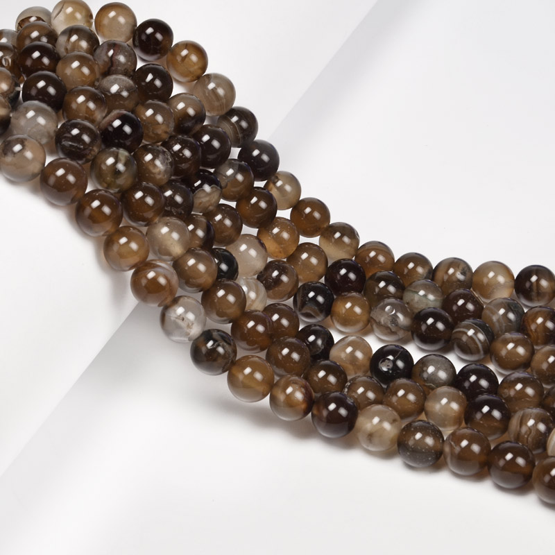 Намистини Агат коричневий, Натур. камінь, 8 мм, Круглі (BUS-053938) / 1 низка