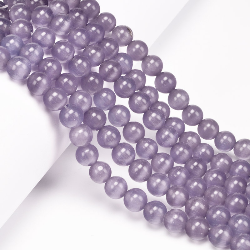 Намистини Котяче око, Синт. камінь, 8 мм, Аметистові, Круглі (BUS-054230) / 1 низка