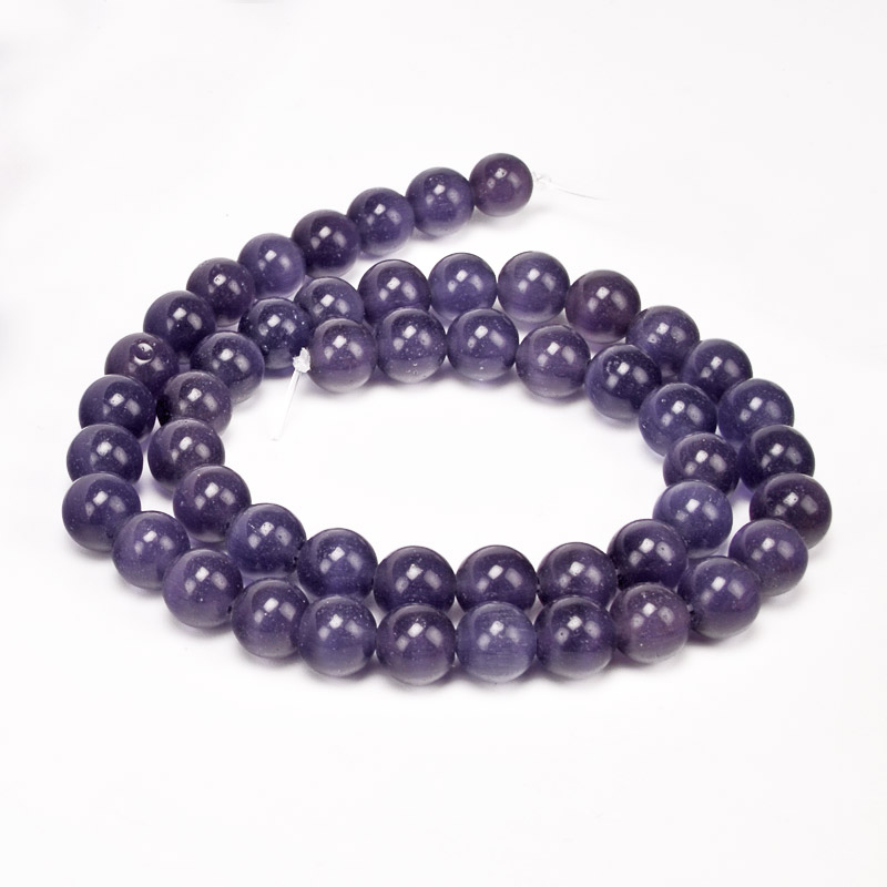 Намистини Котяче око, Синт. камінь, 8 мм, Аметистові, Круглі (BUS-054231) / 1 низка