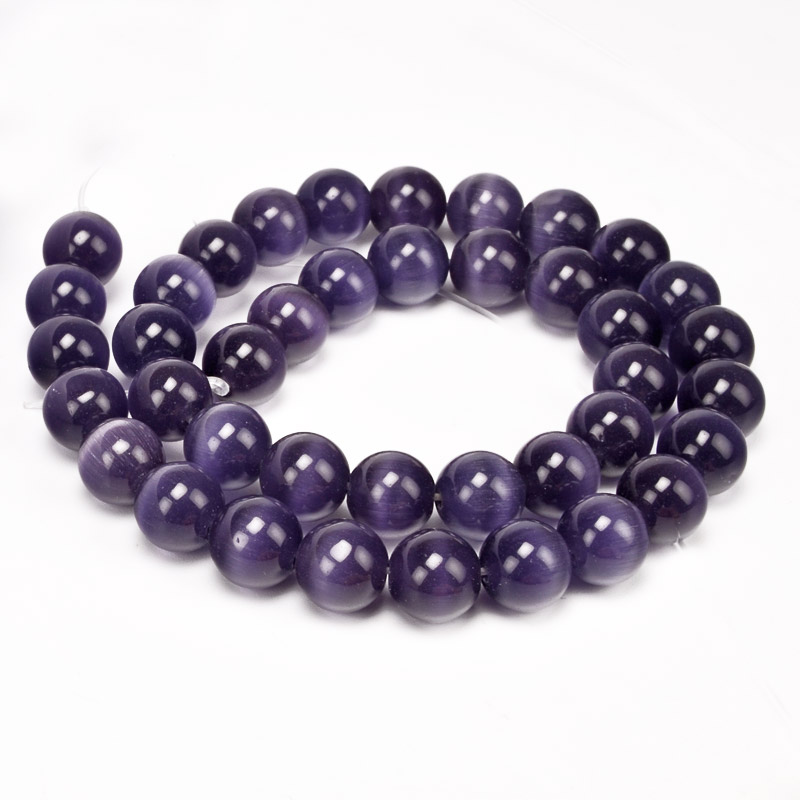 Намистини Котяче око, Синт. камінь, 10 мм, Аметистові, Круглі (BUS-054232) / 1 низка