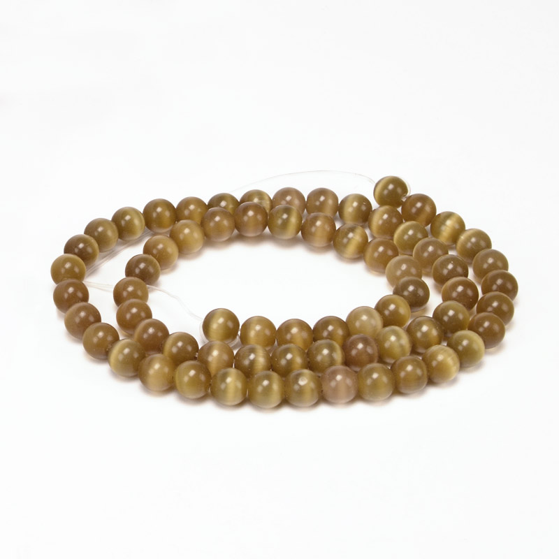 Намистини Котяче око, Синт. камінь, 6 мм, Гірчичні, Круглі (BUS-054233) / 1 низка