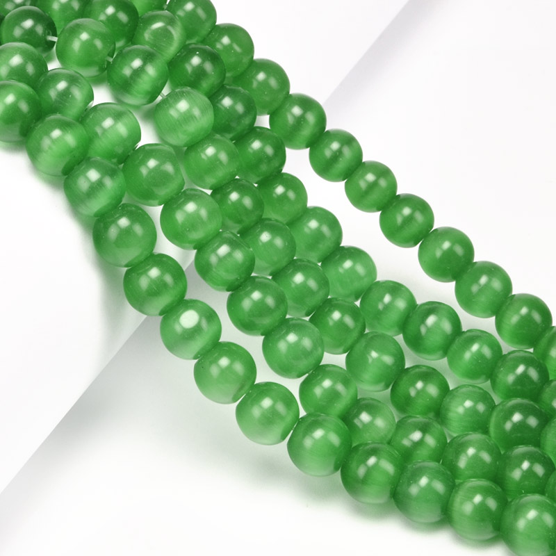 Намистини Котяче око, Синт. камінь, 10 мм, Зелені, Круглі (BUS-054253) / 1 низка
