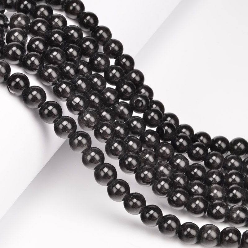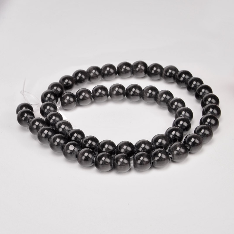 Намистини Котяче око, Синт. камінь, 8 мм, Сірі, Круглі (BUS-054259) / 1 низка