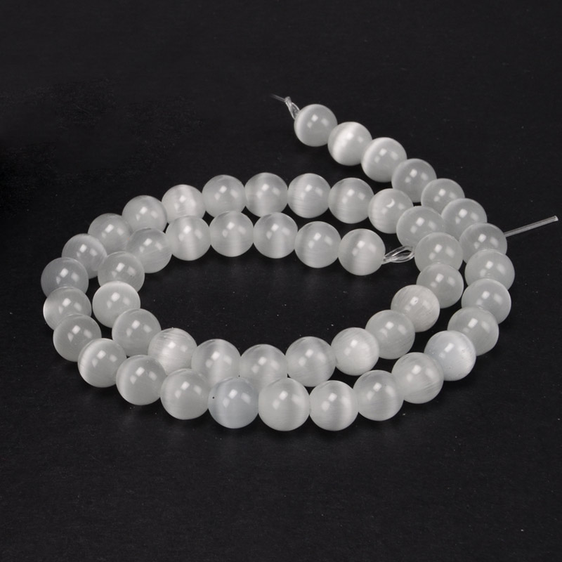Намистини Котяче око, Синт. камінь, 8 мм, Білі, Круглі (BUS-054268) / 1 низка