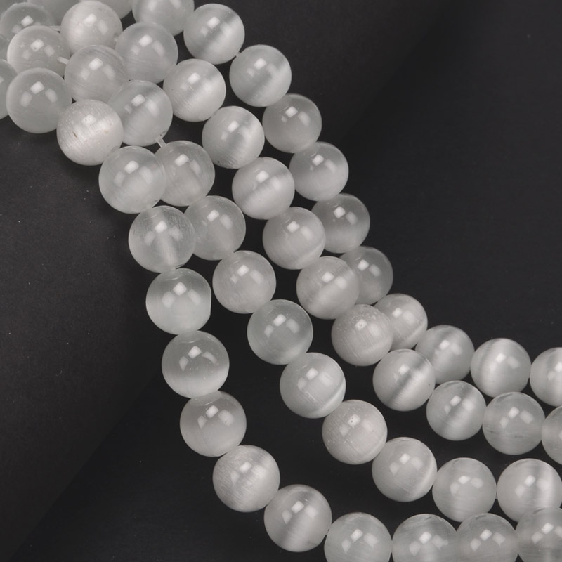 Намистини Котяче око, Синт. камінь, 10 мм, Білі, Круглі (BUS-054269) / 1 низка