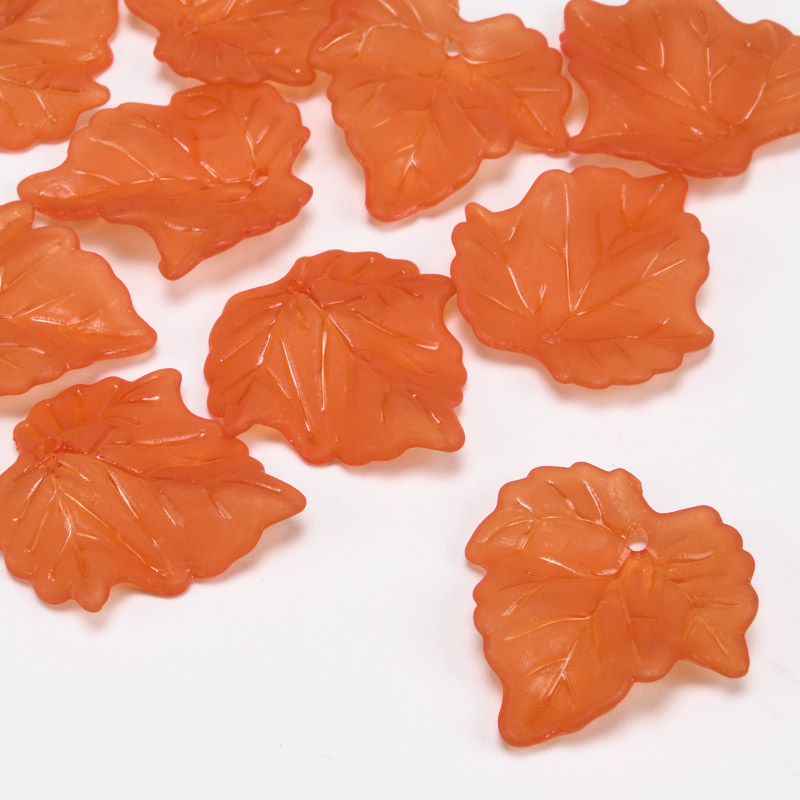 Намистини акрилові матові, Листочки, 24х23 мм, Червоні (BUS-054311) / 1 уп (10 шт)
