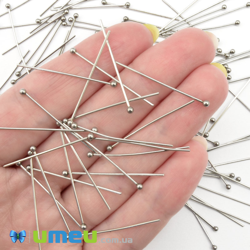 Гвоздики з кулькою з нерж. сталі, 30 мм, Темне срібло (STL-056226) / 1 уп (10 шт)