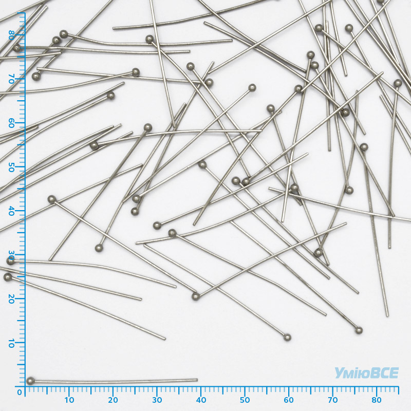 Гвоздики з кулькою з нерж. сталі, 40 мм, Темне срібло (STL-056228) / 1 уп (10 шт)