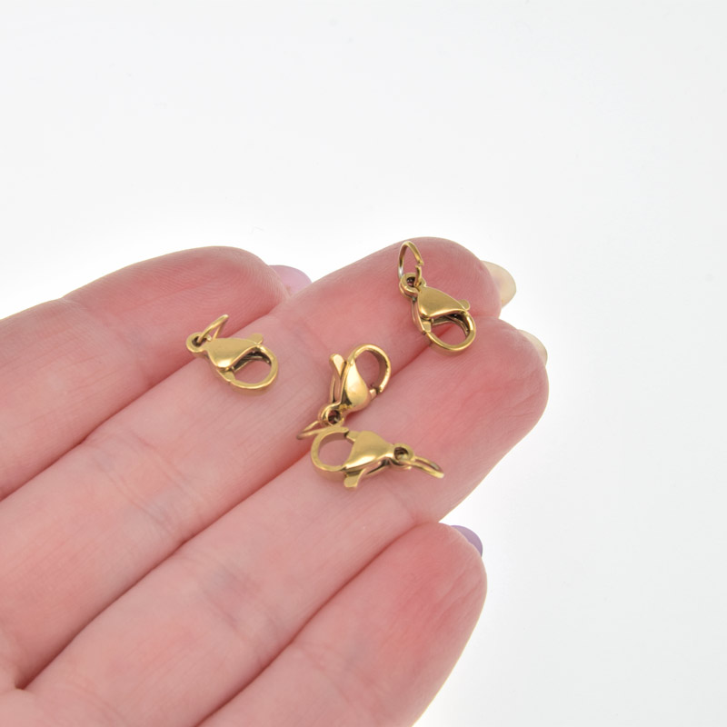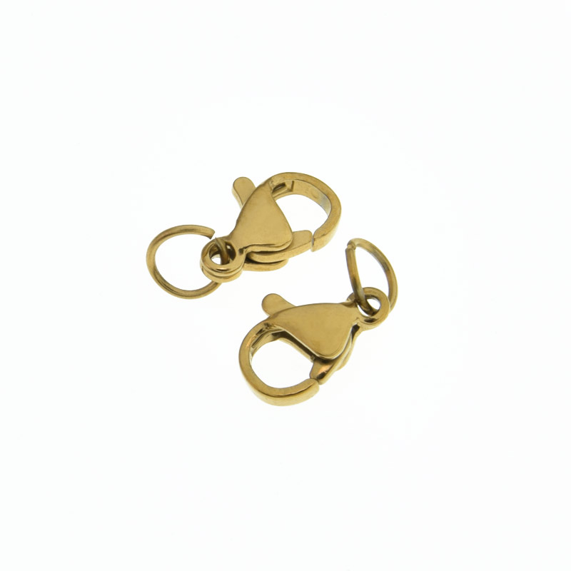 Замок-карабін з кільцем 5 мм з нерж. сталі, 10х7 мм, Золото (STL-057076) / 1 уп (2 шт)