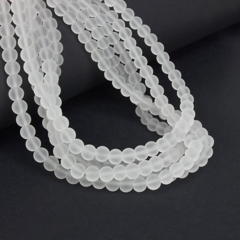 Намистини скляні матові, 6 мм, Круглі, Білі (BUS-057264) / 1 низка