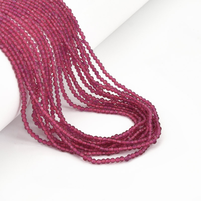 Намистини круглі грановані, 2 мм, Малинові (BUS-057348) / 1 низка