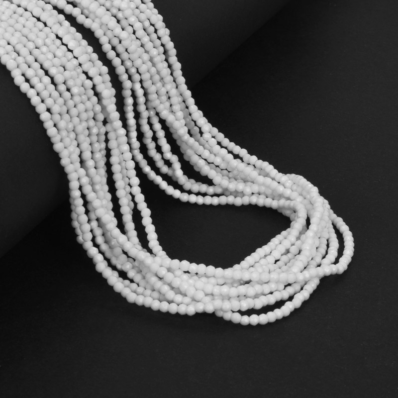 Намистини круглі грановані (імітація нефриту), 2 мм, Білі (BUS-057373) / 1 низка