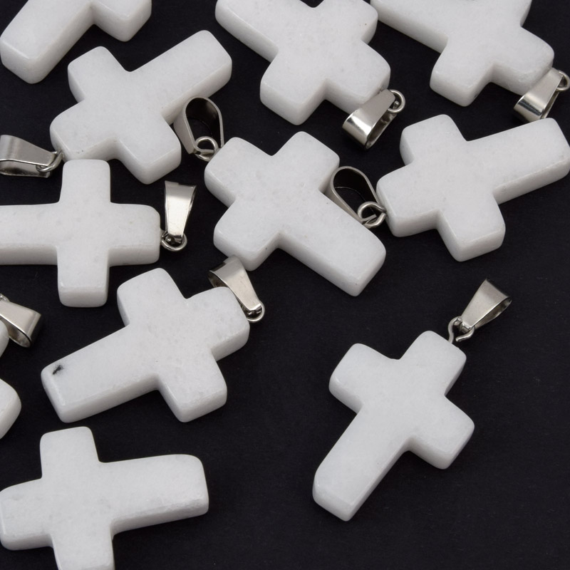 Підвіска Хрест, Натур. камінь Нефрит білий, 30х20х6 мм (POD-057954) / 1 шт