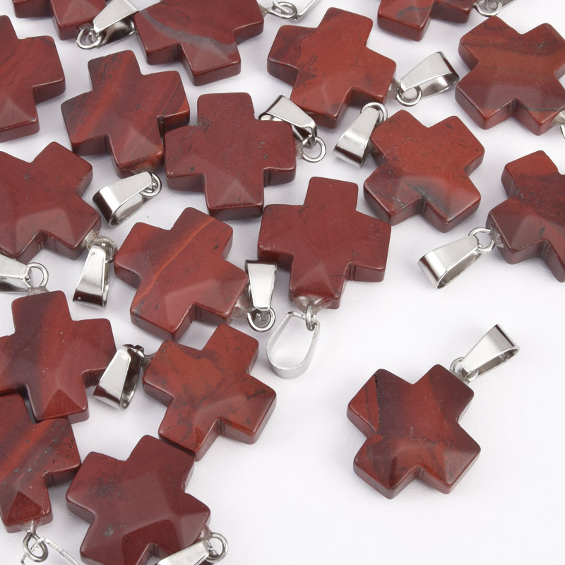 Підвіска Хрест, Натур. камінь Яшма червона, 20х16х7 мм (POD-057961) / 1 шт