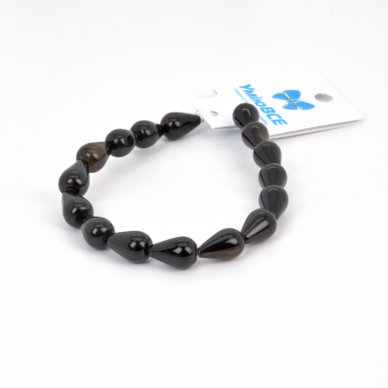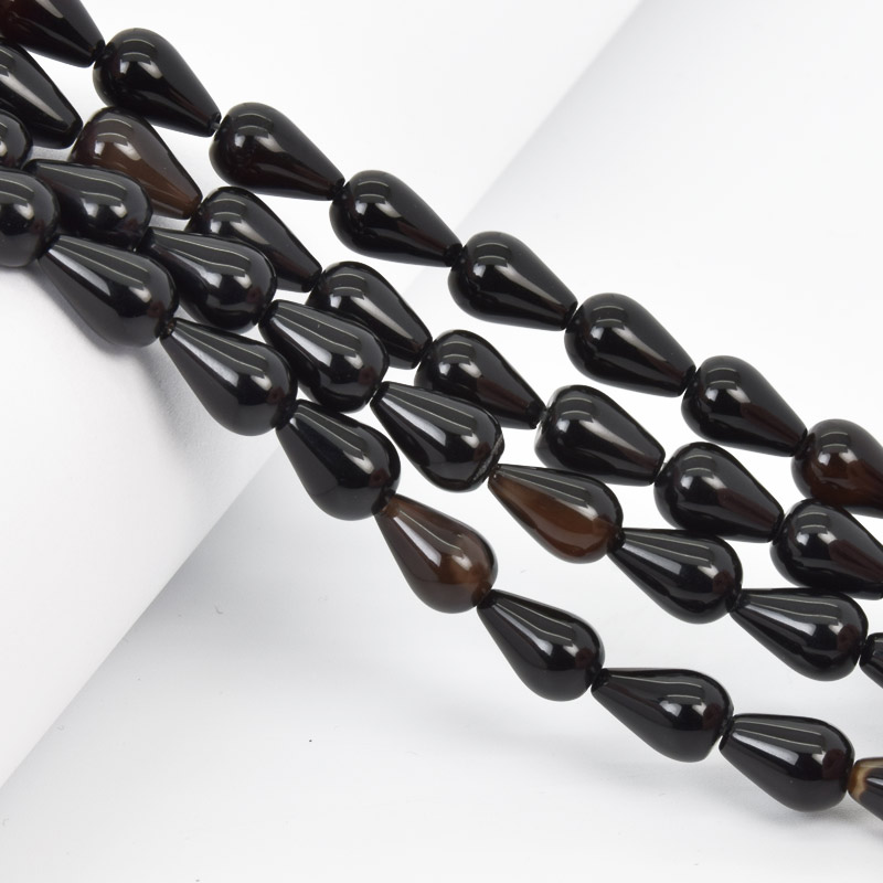 Намистини Агат чорний, Натур. камінь, 12х8 мм, Крапля, 19 см (BUS-057979) / 1 низка