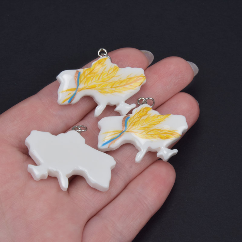 Підвіска Карта України з полімерної глини, 32х26 мм, З малюнком (POD-059391) / 1 шт