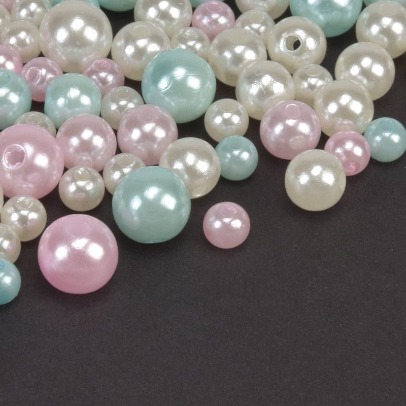 Намистини пластикові Круглі, Перли, 6-10 мм, Мікс різнокольоровий (BUS-059764) / 1 уп (25 г)