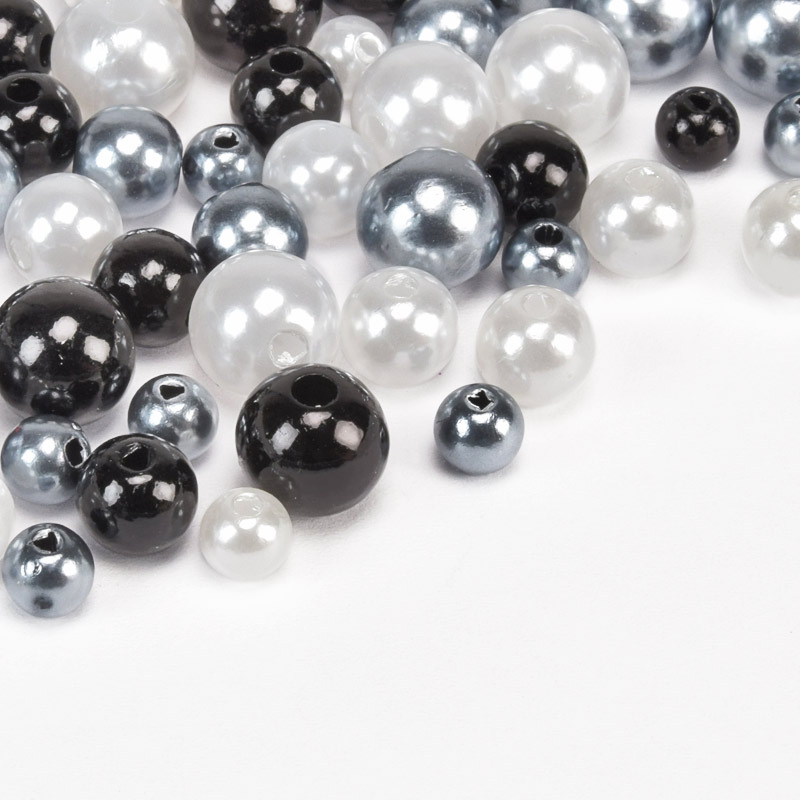 Намистини пластикові Круглі, Перли, 6-10 мм, Мікс чорно-білий (BUS-059768) / 1 уп (25 г)