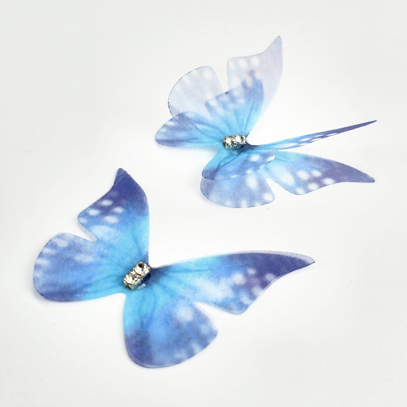 Аплікація пришивна Метелик з органзи, 5х3,5 см, Синя (APL-060096) / 1 шт