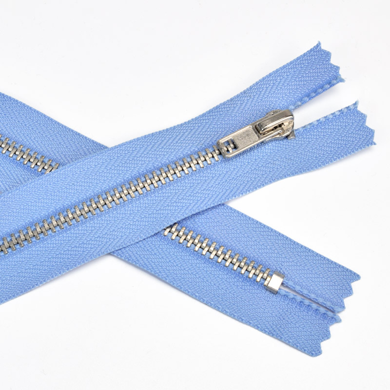 Блискавка брючна металева нероз'ємна, 18 см, Тип 4, Блакитна, Срібло (ZIP-060428) / 1 шт