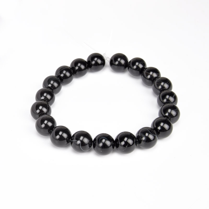 Намистини Агат чорний, Натур. камінь, 10 мм, Круглі, 19 см (BUS-060719) / 1 низка