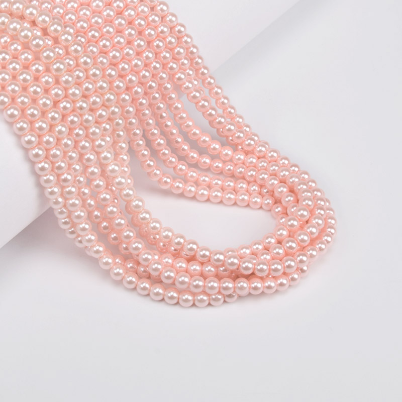 Намистини скляні Перли Premium, 4 мм, Рожеві, Круглі (BUS-060923) / 1 низка